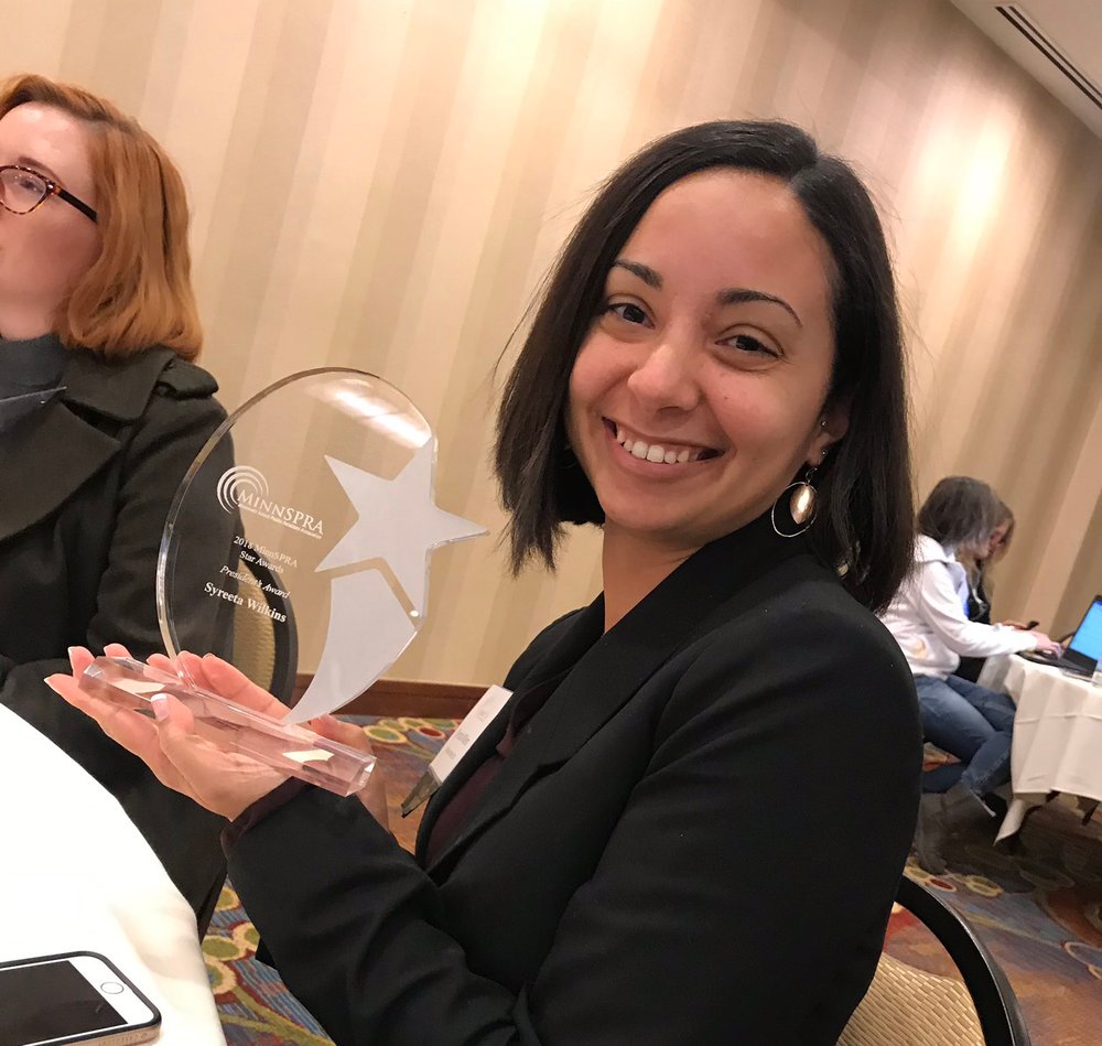 The President's Award is awarded at the discretion of the MinnSPRA President to an individual who has provided special service or support to the President, the Board, or the organization as a whole.